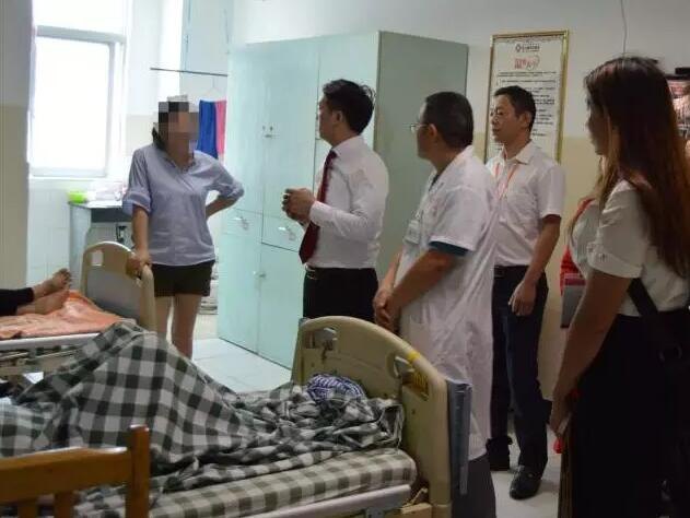 慰问组一行在外科郭英会主任和康复科苏锐荣副主任的带领下先后慰问了住在外科病房和综合住院部的病人,详细询问了他们的康复情况,鼓励他们安心养伤,保持乐观的心态,争取早日康复。