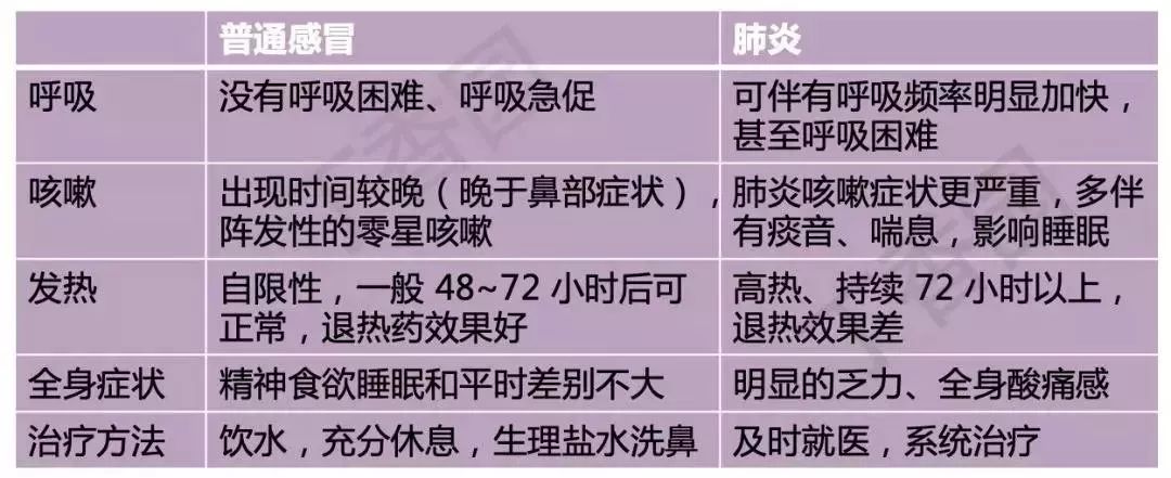 (普通感冒和肺炎的区别)