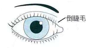 倒睫:是指睫毛向后方生长,以致触及眼球的不正常状况。倒睫是儿童,青少年以及老年人中比较常见的外眼病,主要是睫毛的生长方向发生异常。生长方向异常的睫毛,尤其是倒向角膜表面生长的睫毛,不但经常摩擦角膜上皮,引起异物感,怕光,流泪等症状,还会引起眼球充血,结膜炎,角膜上皮脱落,角膜炎,角膜血管翳,角膜溃疡,角膜白斑,进而影响视力。